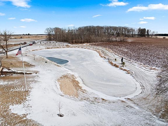 Enjoy the peace & privacy of 5+ acres w/this well-maintained 3-BR, 3-BA home.Main level features a spacious open-concept kitchen,dining & living area filled w/abundant natural light.Kitchen offers an oversized island & includes appliances--perfect for everyday living & entertaining.The LR showcases large windows w/views of the pond & surrounding countryside along w/a cozy wood-burning fireplace.Patio doors in the dining area lead to a relaxing deck,ideal for enjoying the outdoors.Also on the main fl. are 3 BR's and 2 full BA's.The LL provides a generous family room w/a 2nd fireplace,3/4 bath & a versatile mudroom/office area, plus a one-car attached garage.Outside, you'll find a beautiful pond,over five acres to explore & two outbuildings(approx.. 82x24 w/shop & an additional 20x24 garage)