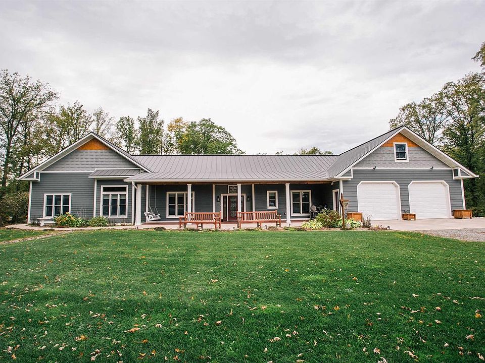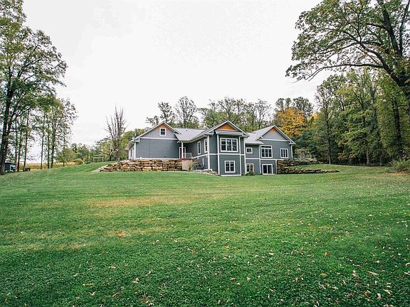 This custom-built residence offering over 5,000 square feet of superior craftsmanship and privacy is a show stopper. The property is set on 68 acres, ideal for outdoor enthusiasts or those seeking space for animals or a hobby farm. There are numerous groomed trails throughout the property, a small creek and many large deer harvested over the years. The site features a detached, insulated, wood-heated shop (40' x 56') with water lines and a dedicated 200-amp service, as well as a heated 20' x 20' greenhouse/potting shed. A stamped concrete and covered patio leads to the stunning front door where you step inside to an open-concept main floor, which showcases premium finishes throughout. The gourmet kitchen includes granite countertops and backsplash, commercial-grade WOLF appliances, Kohler fixtures and a concealed pantry for additional organized storage. The main level also features flawless hardwood flooring, abundant natural light, an office with concrete countertops, a laundry room, and a primary bedroom with en-suite bath and walk-in closet. The lower walk-out level comprises