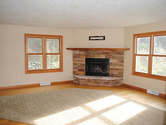 Breathtaking views from this unique 2 story walk-out on 1.67 acres. 4 bedroom home with upstairs loft with bathroom between the two rooms and whirlpool tub. Huge 4 car garage. 2 story foyer, wood-burning fireplace and wood stove. Finished lower level with walk-out. Very private!