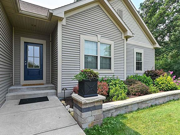 This is the one you've been waiting for! 2017 built ranch home with amazing nearly 3/4 acre wooded lot and nearly 1000 sqft of outdoor covered patio space. Interior is open concept, kitchen has marble backsplash, granite counters, and appliances included. Dining room has 3 pane Anderson patio doors adjacent to living room w/gas fireplace. 3 bedrooms and 2 full baths on main level, primary suite has tray ceiling, walk in closet, patio doors, and bathroom with dual sinks and walk in shower. Full exposure lower level is plumbed for bathroom, has egress window, and a poured concrete structure. Exterior that will not be beat, w/lights, outdoor kitchen, fountain, fireplace, hot tub, w/a wooded backdrop, deeded beach access, and back service road on 2nd parcel. Appraisal on file, call today!