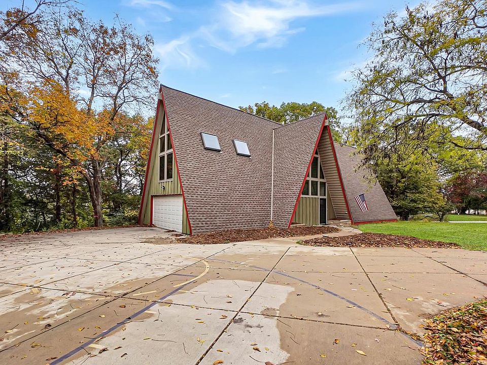 One-of-a-kind 2-story A-frame contemporary home on a gorgeous 1+ acre wooded lot on Wildwood Point Rd! This gorgeous masterpiece is full of unique design features throughout and includes an indoor pool! Vaulted foyer with a wall of windows greets you. Vaulted family room has fireplace and plenty of windows. Kitchen offers granite countertops and SS appliances included. Option for living room or large dining room with back yard nature views. One bedroom/den on the main level. Upper level features an amazing vaulted master suite with wall of windows, walk-in closet, and private bath. Two additional bedrooms, full bath, and laundry on upper level. Lower level offers a family/rec room, full bath, and pool room with indoor in-ground pool! Private back yard patio. Don't miss this opportunity!