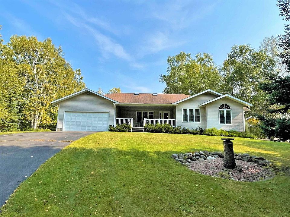 Follow the wooded winding driveway up to this beautiful, picture-perfect home ON THE LAKE!! This spacious, well-kept 3 BR, 2 BA home sits on +/-4.29 acres with +/-330' of sandy water frontage offering you a private escape to peace & quiet and a gorgeous setting. A blacktop driveway approaches a park-like setting, att 20x28 garage and covered front porch. Inside the home, you will appreciate single-level living and an open concept floor plan w/vaulted ceilings; numerous windows; spacious kitchen w/snack bar & island; cozy living room area w/wood-burning stone fireplace; dream-worthy knotty pine sunroom; large master BR ensuite w/views out to the lake, walk-in closet, full bath & walkout to the lakeside deck; and laundry closet near the bedrooms. The basement provides space for a family/rec area, workbench, storage room & garage door to provide extra storage/parking. Furnace/AC new in 2020. Just a few steps down to the water & aluminum pier. Being sold w/all items included. Call today!