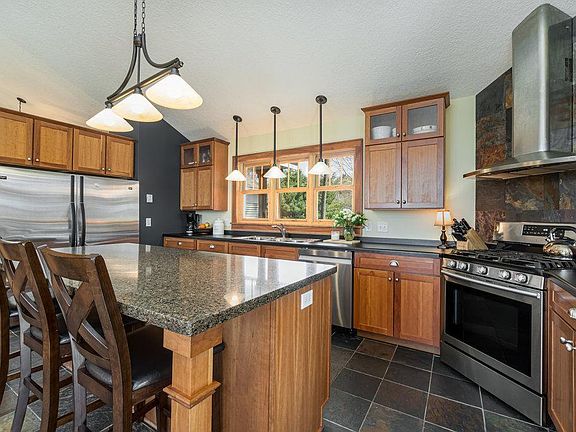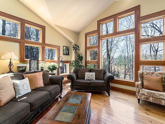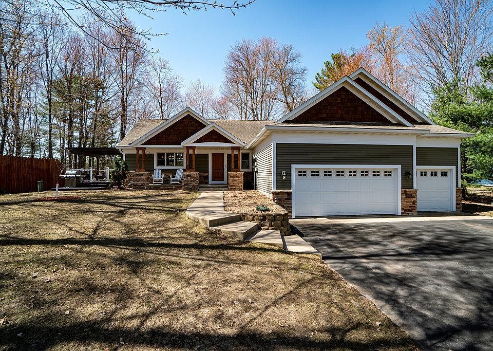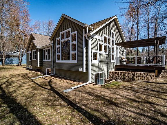 Situated on a quiet riverside road with gorgeous views of Red Cedar River, this home offers beauty, ease of living and plenty of space to celebrate life with family cookouts, friends arriving at your brand-new deck to enjoy the sounds of the rapids or brunch in your gourmet kitchen. Enter into the foyer leading into open design living room and dining room w/3 sided fireplace. Amazing kitchen w/cherry cabinetry, island w/quartz countertop and top of the line appliances. Unique windows throughout with incredible views. Office with French doors and master suite w/tiled shower, separate bath tub and massive walk-in closet. Open staircase to lower level family room w/bar and recreational room, 2 additional bedrooms w/walk-in closets, full bath and storage room. Enter from 3 stall garage into a mudd room, separated bath and laundry room. This breathtaking home is ready to welcome you in. Home Pre-Inspected.