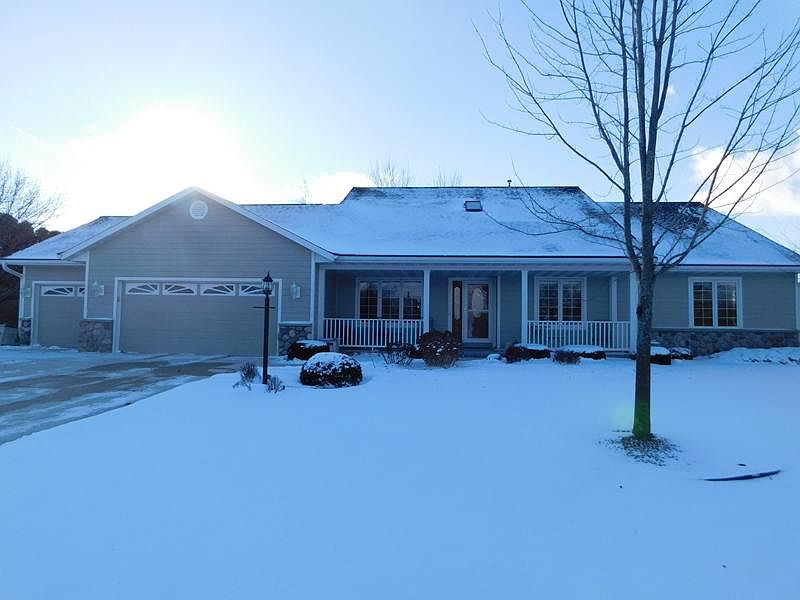 You will love this executive ranch in the beautiful River Woods neighborhood. 3 really nice sized bedrooms as well as a large great room area with a natural fireplace. A chef's dream kitchen with large eating area and great views of the large private back yard. Many updates throughout the house including roof, gutters, siding, garage doors, sump pump with alarm, water heater, front and back doors as well as carpet. Full basement features huge finish rec room with large windows looking out to back yard and a work room with stairs up to the garage. This one is a must see.