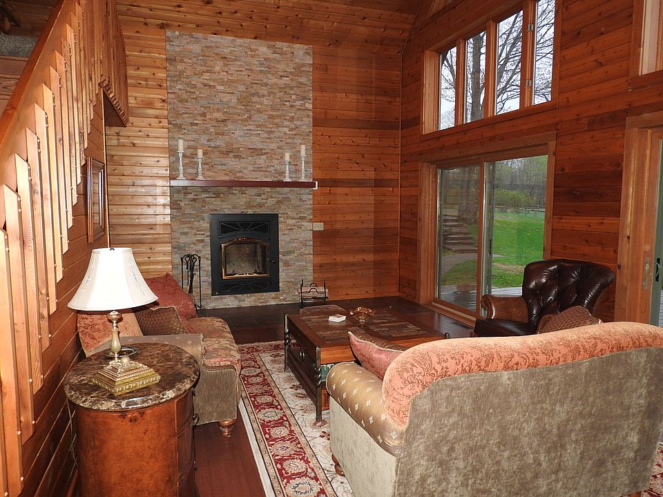 You'll love relaxing on the deck of this gorgeous 3 bed/3 bath chalet redone top to bottom! Watch your horses graze in the serene meadow. Spacious 40x60 pole barn with lean-to and water. You'll appreciate the beautiful stone granite and hardwood along with a brand new kitchen. Sit by the fireplace or enjoy a movie in the walk-out lower level family room with wood stove, full bath and huge bedroom with walk-in closet. Heated detached 2-car garage/shop is perfect for projects/hobbies. Very clean.