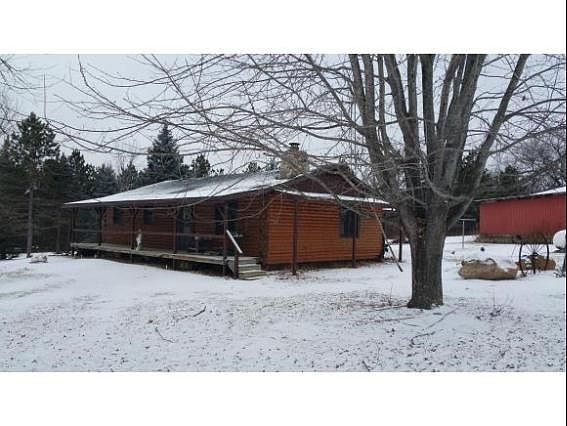 Rustic Log Home has two bedrooms with potential for three. Gas Field Stone Fireplace is a focal point from living Room, dining room and kitchen. Serene views of 16 plus acres. Has 5 apple trees and 2 pear trees, a 10 stall horse barn with electric, and a water hydrant. Heated Pole barn workshop tops it off. Home has great expansion potential! A little bit country? This is it! Road Association Fee of one hundred thirty six dollars in 2014.