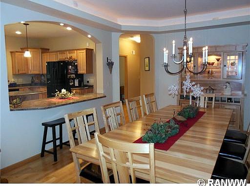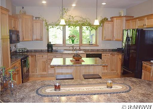 Gorgeous Home! 20 Beautiful Acres! Direct Access to Thousands of Public Acres! Rusk County less than 15 minutes to Rice Lake! Are you looking for quiet, peaceful, spacious living? This quality home boasts 4 bedrooms, 2 fireplaces, Hickory Cabinets, 36" Solid Maple interior doors, 9' ceilings, Birch flooring, In-Floor Heat, Immaculate Landscaping, Walkout Basement, 30x40 shed with 8' attached lean-to, adorable potting shed or playhouse nestled on 20 acres in the heart of the Blue Hills!