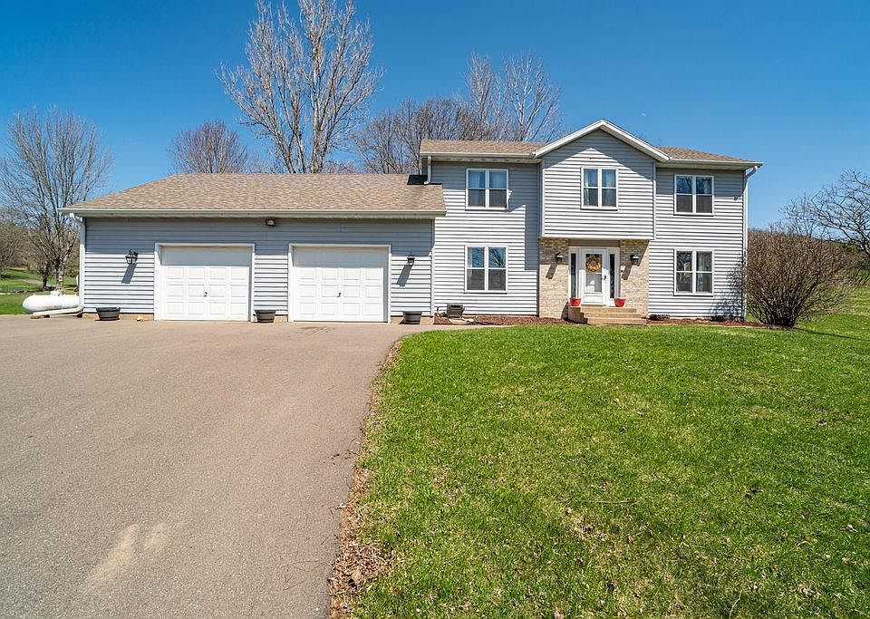 Country living minutes from town...Beautiful 4 bedroom/3 bath, 2-Story home situated on a mature 1.74 acre lot. Open and spacious design. Main level boasts a great room w/fireplace, formal dining room, kitchen and dining area, laundry, bath, and mudd room. All 4 bedrooms on upper level. Master Suite(walk-in closet), and additional 3rd bath on 2nd floor. Lower level family room, workout room/office and ton of storage. Over-sized two car insulated garage, steps to basement. Additional parking on side of garage. Several fruit trees and Playset included. Menomonie high and middle school and highly rated Wakanda elementary. Home Pre-inspected.