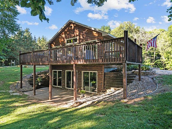 This beautiful log sided home sits peacefully on a spacious 6.5 acres on Sturm Lake. This rare opportunity to own a large parcel on a lake is becoming hard to find. Located just North of Manawa, this 3 bedroom home features 2 bedrooms on the main level, full bath, vaulted ceilings and open concept in the living, dining and kitchen with wood accents and spectacular views! The lower has a finished family room with bar area and walkout to a patio, full bathroom and bedroom. Spacious laundry area with additional storage, utility sink and counter space. The large deck offers a great place to relax and enjoy nature and the peaceful surroundings with expansive views over the lake. A 36x36 shed offers plenty of space for vehicles and additional toys. Many fruit trees and raised garden beds as well