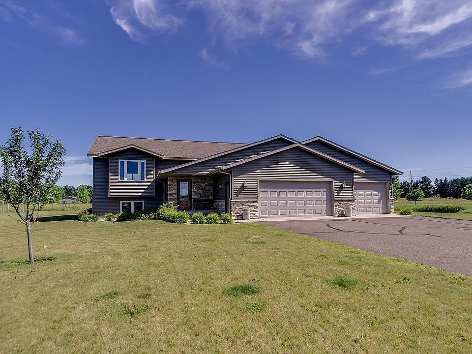 Large bi-level home in Cedar Falls! This house sits on a level 2.6 acre lot! Seller has planted hundreds of young oaks, maples, white spruce & cedar trees! Awesome open floor plan. Huge kitchen w/maple cabinets & lg pantry for extra storage! Secluded owner's suite (perfect for those working different shifts!). Home office and separate bonus room in lower level (toy room, 2nd office, exercise room, etc). Large family room with free standing wood stove that easily heats entire house!In ground sprinkler system. Minutes from I-94
