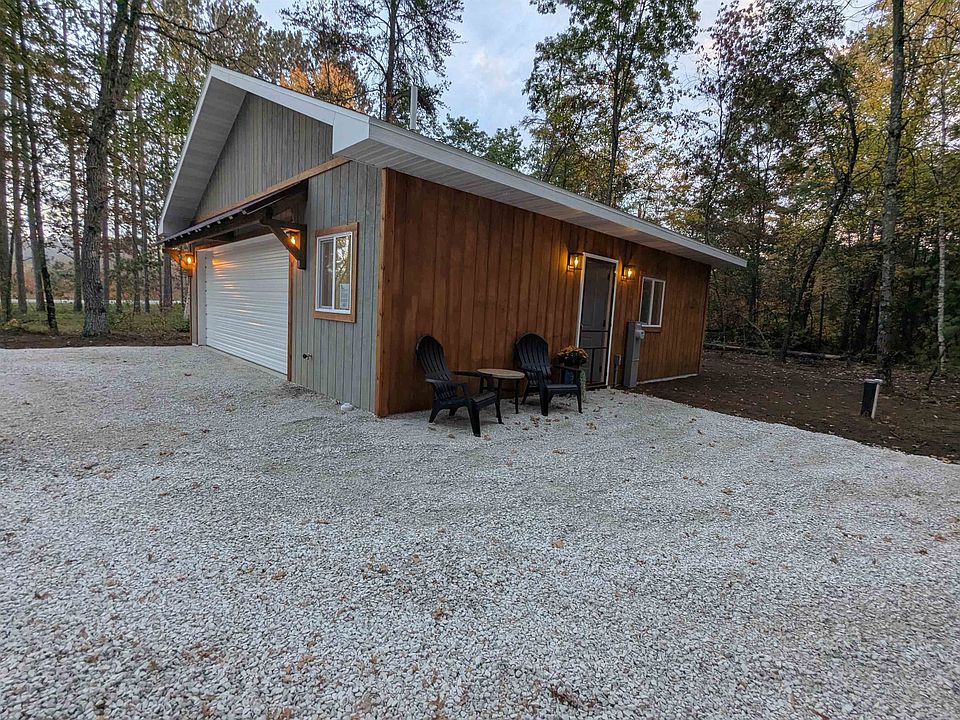 Location ! Location! This brand new construction has a new conventional septic, electric, drilled well, garage with a half bath ready to use. Custom built with many added extras. Permitted and per code on everything. T-11 siding with cedar trim. 200 amp panel. underground service including a 50/30 hook up for parking pad. Crushed limestone driveway/firepit/parking pad.