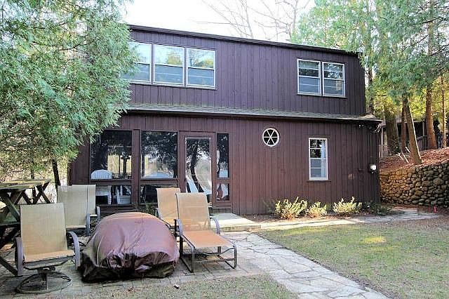 AWESOME 55 FT OF EXCEPTIONAL HARD BOTTOM & DEEP SWIMMING FRONTAGE!! Bright Kitchen with Center Island Snack Bar, Prep Sink, Beautiful Oak Cabinetry, Pantry Area & Triple Patio Doors to 32 Ft Deck, Fabulous Family Room with Natural Fireplace, Large Picture Window with Wonderful Lake Views, Main Level Master Bedroom w/Patio Doors to Huge Deck, Screened-in Sun Porch w/Awesome Views of Lake, 3 Additional Nicely Sized Bedrooms, 2 Full Baths, Ample Parking & Possible Room For Additional Garage Across the Street!
