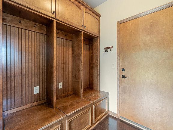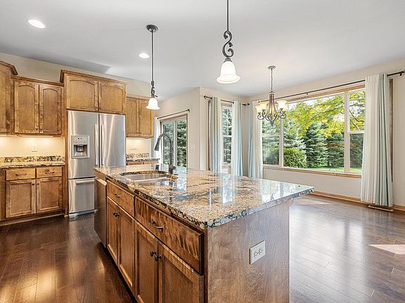 Stunning contemporary two-story home, nestled the mature Bark River Crossing subdivision. Enjoy privacy and natural beauty with the Bark River and scenic Bug Line trail right in your backyard! This nicely landscaped property features a private patio to soak in the serene surroundings. The open concept layout features hardwood and tile floors, custom cabinetry, granite countertops, and Pella windows that bathe the home in southern exposure. The main level includes a Primary suite with walk-in shower and closet, eat in kitchen with large island and walk-in pantry, cozy living room complete with gas fireplace, home office and laundry. Upstairs you'll find 3 more bedrooms and a huge bath with double vanity. Lower level egress window, plumbed for future bath and ready for your future expansion