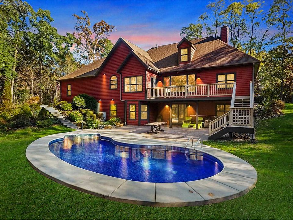 Wooded paradise on 5 private acres. 4+ bedrooms, 3 bathrooms, walk-out finished lower level, heated inground pool, and 2 accessory buildings. Stone fireplace with high efficiency wood stove enclosure. Open concept kitchen with island, granite, SS appliances, tile backsplash, new lighting. HW floors and solid wood doors throughout. Upper bonus room could be 5th bedroom, craft room, office, kids room. Main floor master en-suite. Finished walk-out LL is an amazing entertaining area. Custom wet-bar, pool table area, bathroom with tile shower all lead to the new pool area surrounded by patio. New driveway to the road. Attached garage and detached 3 car workshop is heated with separate electric and work benches. Metal carport for more storage. ATV trails throughout with plenty of deer and turkey
