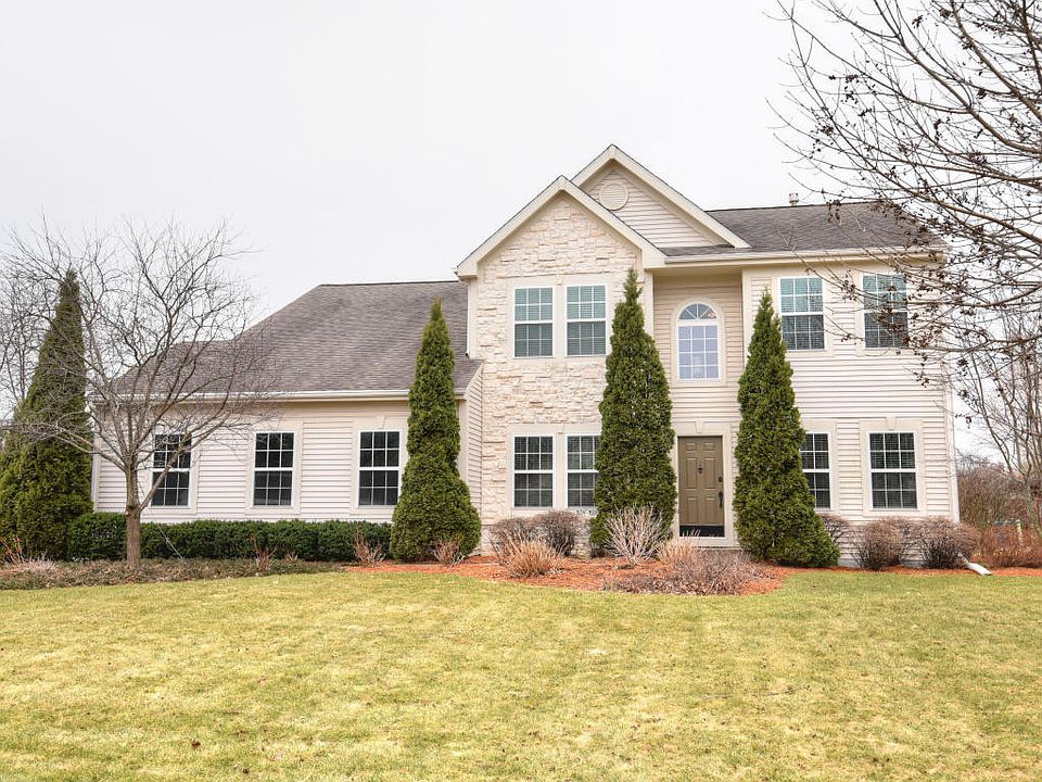 Home Warranty included. Welcome to the Centennial Oaks neighborhood and this beautiful William Ryan colonial style home. Spacious eat-in kitchen with Merillat cabinets, large center island and convenient food pantry. Almost a 1/2 acre private lot with attached deck. Cozy living room with gas fireplace. Formal dining room. Main floor laundry room. Bonus 5th bedroom den/office on main floor. Master bedroom suite with walk-in closet and private full bathroom. Finished lower level rec-room with full bathroom, wet-bar and bonus exercise room.