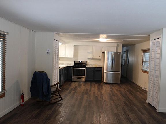 Welcome to this charming 2-bdrm, 1-bath home located in the 55+ Pine Vista community, offering comfort and character throughout. Both the primary and secondary bdrms feature warm wood paneling on select walls, creating a cozy atmosphere. The bathroom has a lovely cabinet and shelving. The spacious living room is filled with natural light from the bay window, making it perfect for relaxing or entertaining. The open kitchen features beautiful blue cabinets and stainless steel appliances, combining style and functionality. Additional highlights include an attached carport, a 17x12 three-season room ideal for sun soaking, and a 13x12 storage/workshop area. Residents also enjoy access to a community building. Monthly rent is $615, which includes water, septic, garbage pickup, lawn care, and snow removal. Mobile home sold by Bill of Sale on leased land. Sale subject to buyer approval by Pine Vista LLC. Application procedures are on file with the listing agent. Verify tax information.