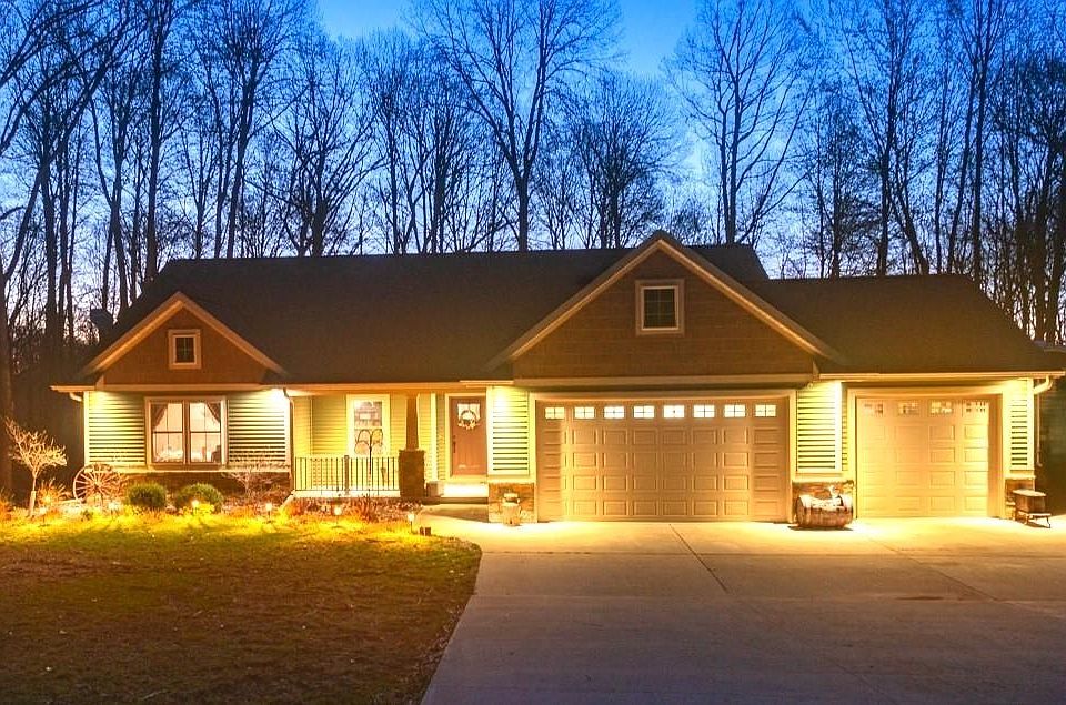 Spring Lake- 3Bedroom 3Bath home nestled in the 2acre woods. Home built new in 2016. Popular open concept has kitchen island workspace. Rich cabinets compliment counter tops. Stainless appliances include stove, refrigerator, dishwasher, micro. Main level laundry room includes w/d. Mudroom off garage hosts handy locker space. Entry foyer off covered porch creates a grand entry. Large windows capture the quiet outdoor views, Gas fireplace- Huge Master Suite tile walk in shower. Lower level rec room has wet entertainment bar, pellet stove and storage lower. Full bathroom has large walk in shower 2 unfinished lower rooms invite your design. Future office space or bedroom possibilities. Backyard firepit, designer outside entertainment w/Firepit. This home is close to Spring Lake.