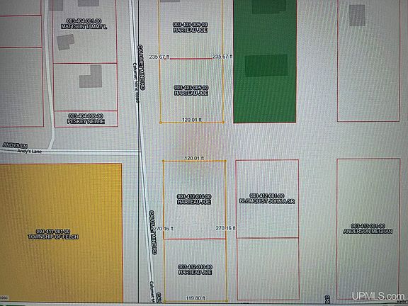1.36 acres that is split in 4 parcels and divided by an alley easement (that could be abandoned by county). Build home or ??... storage buildings? Property fronts also on M69 so possible to have a commercial building too. Motivated seller. There is an old vacant commercial building close to M69, it needs work but could be used for storage or rehab for your personal use. MOTIVATED seller!