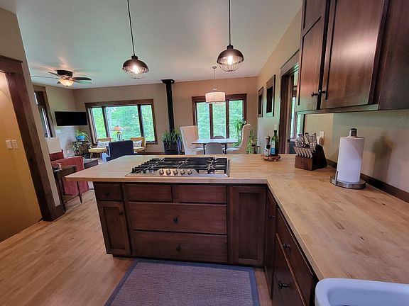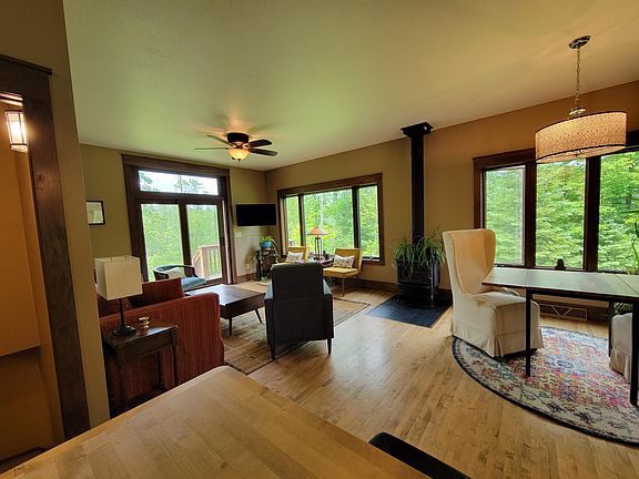 Located in a high recreation area this custom-built 1500 SF 2BR/2BA home spared no expense and is looking for that special buyer who appreciates homestead luxury with full access to the ATV/UTV & Snowmobile trails & a short distance to a public boat landing. Farm to table enjoy fruits from your small orchard & vegetables from gardens with raised cedar containers & organic soils. Turn-key home designed by a professional architect has gorgeous views from every angle w/a view of a neighboring pond. This getaway delight lives large with 9'ceilings throughout, including 9' poured concrete basement. You will find high end construction throughout as well as ample storage space & new bidet. Fully custom maple cabinets, built-ins, trim & casings provide character only offered in the highest-end homes. The NEW master bathroom is sure to please. High speed internet for your home office. Cozy sunroom with wrap-around windows & beaded ceiling overlooks the orchard, gardens & forest beyond.