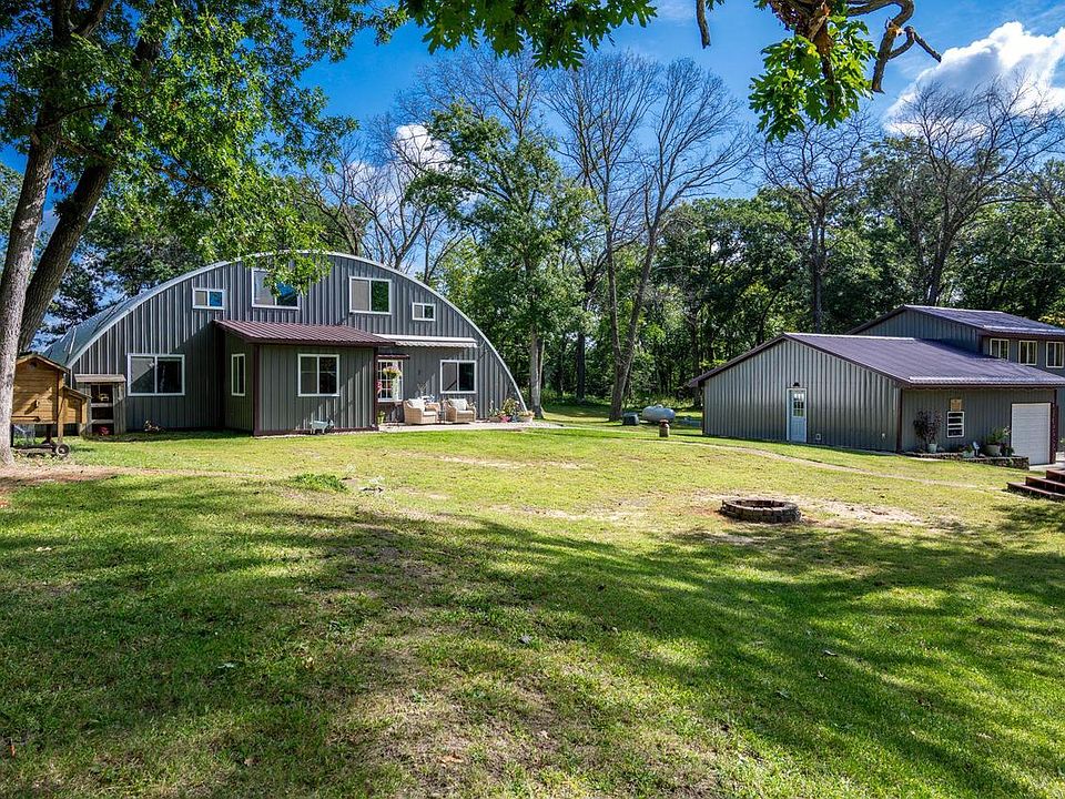 Unique 3,100 sq ft Quonset-style home on 29.7 acres, built in 2020. Features 4 bedrooms, loft, and open-concept living with soaring 18-ft ceilings. Large Primary suite includes walk-in closet, private toilet, and large tiled walk-in shower. Spacious 4-car garage with cement and a 484 sq ft bonus room above, complete with full bath?perfect for guests or office space. Enjoy a covered front yard gazebo, scenic trails, and multiple deer stands throughout the property. Wildlife is abundant, offering a peaceful, private retreat ideal for outdoor enthusiasts. A rare blend of modern comfort and country living. A peaceful cozy space to call home.