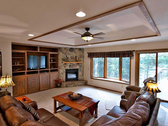 Welcome to this stunning 4 acre property with limitless opportunities. With 250 feet of frontage on Big Bass Lake, this property allows the opportunity to escape to your own resort-like oasis complete with a main home, a cabin, a garage w/bunkhouse & a storage shed. With three different living quarters, there is an opportunity to rent some out for income & make a business out of it! The main home features 3 bedrooms on one level, a bright open floor plan, full kitchen, stone fireplace & large windows. The lower level is unfinished & features a walkout to the park-like backyard. Build equity by finishing the lower level to your liking! The cabin features one bedroom, a stone fireplace, living room area, bathroom & a kitchenette. Both "cabins" come complete with furnishings & the dock. The bunkhouse features a living area, full bathroom, & a sauna! Take the walking path down to the lake to take in the tranquil views or head out onto the water. Additional Lake frontage & land available!