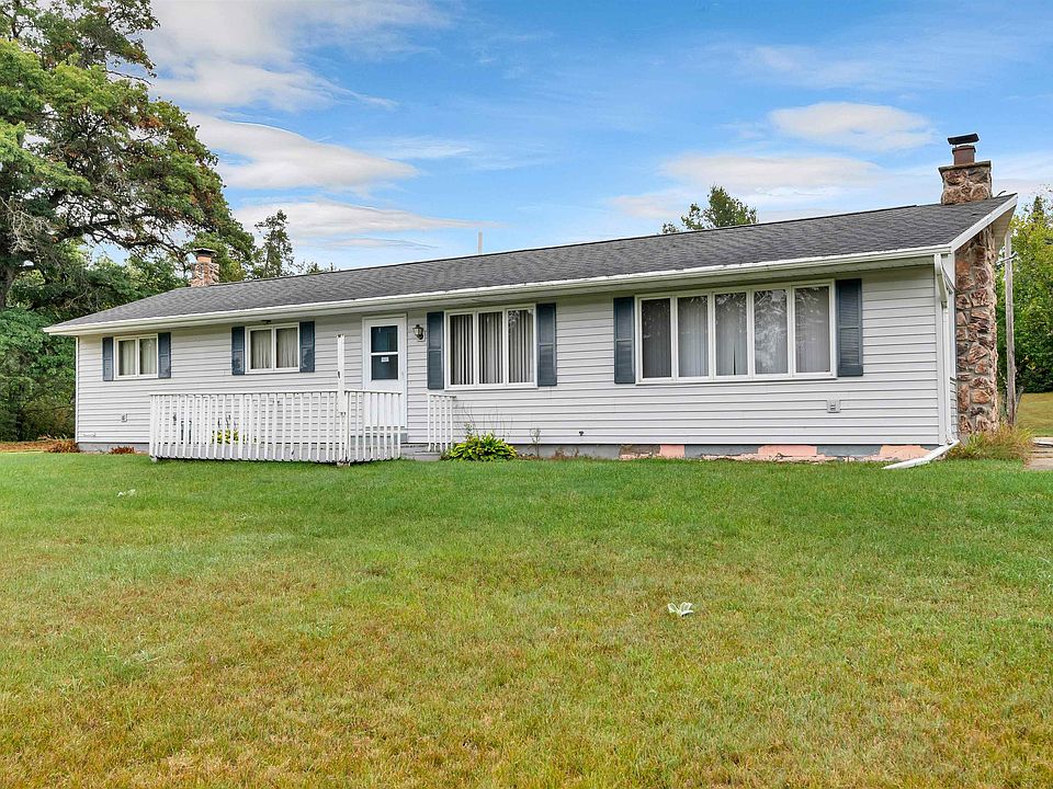 Private country living at it's best! This home sits back on 2.6 acres open and wooded with walking trails. Come see this 1440 sqft stick built ranch style 3 bedroom 1 bath home. This well cared for home has an open concept living room, dining area and kitchen. Tons of windows for natural light. Huge center island with plenty of seating for entertaining. All kitchen appliances included. Stone wood burning fireplace. Huge basement with workshop area. Tons of storage. 30X30 Insulated 2.5+ stall garage. 10X30 back area for extra storage. 9X23 attached lean to for wood storage. Green House. 16X16 3 Season room/back entry area. Home comes furnished. Location is 10 Minutes from Crivitz. Many lakes, ATV Trails, bars/restaurants and much more! Make this your weekend retreat or year round home!