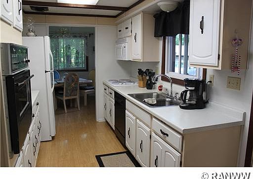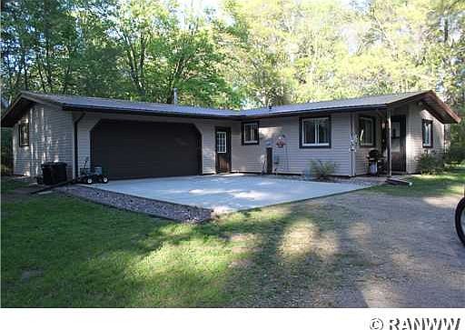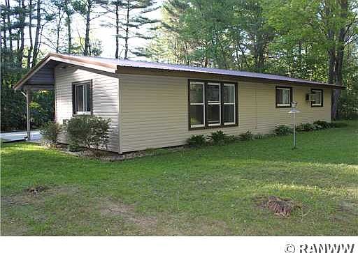 Updated Ranch near Tainter Lake on private 2.57 acre lot! New steel roof (2013), newer windows, siding & doors. New nat. gas furnace & water heater, Full basement could be finished to include large family room. Main floor laundry room. 24x27 detached shop w/cement floor. Garden shed & kennel. One level living! Lots of wildlife!