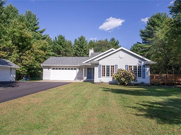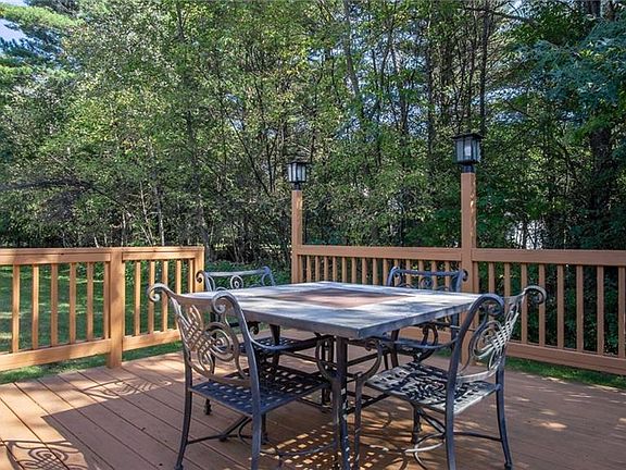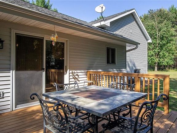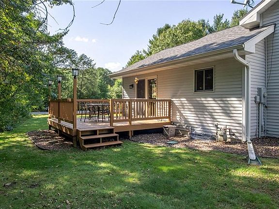 Tainter Lake area home! Home is located on private wooded 1.63 acre lot! Beautiful views of nature, woods and wildlife out every window! Home features granite countertops, wood floors, ceramic tile, vaulted ceilings, and large kitchen pantry! Grand stone gas burning fireplace in lower level family room. Lowest level on home has bonus "man cave" or additional family room. Multi-level home allows individual space for hobbies or homework. Great area to walk or ride bike. Close to Tainter Lake boat landing. Attached oversized garage w/attic storage and separate storage shed!