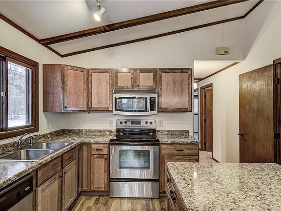Location. Location. Location! Across the street from Lake Tainter near two boat landings, Jakes & Pioneer, set on huge, picturesque 1.3acre lot. Stainless Whirlpool appliances w/ new cherry cabinetry & countertop complete this beautiful kitchen. Vaulted ceilings compliment open concept layout. Freshly professionally painted & move in ready. Lots of storage inside & plenty of room for toys in large 3 car garage plus 12'x24' carport! Original log cabin adds to the charm of this fabulous property. Hot water/electric/wood heat options mean efficient utilities with Jun-Nov 2018 Gas/Electric Monthly Avg= $40.46/$47.19(Xcel statements available).
