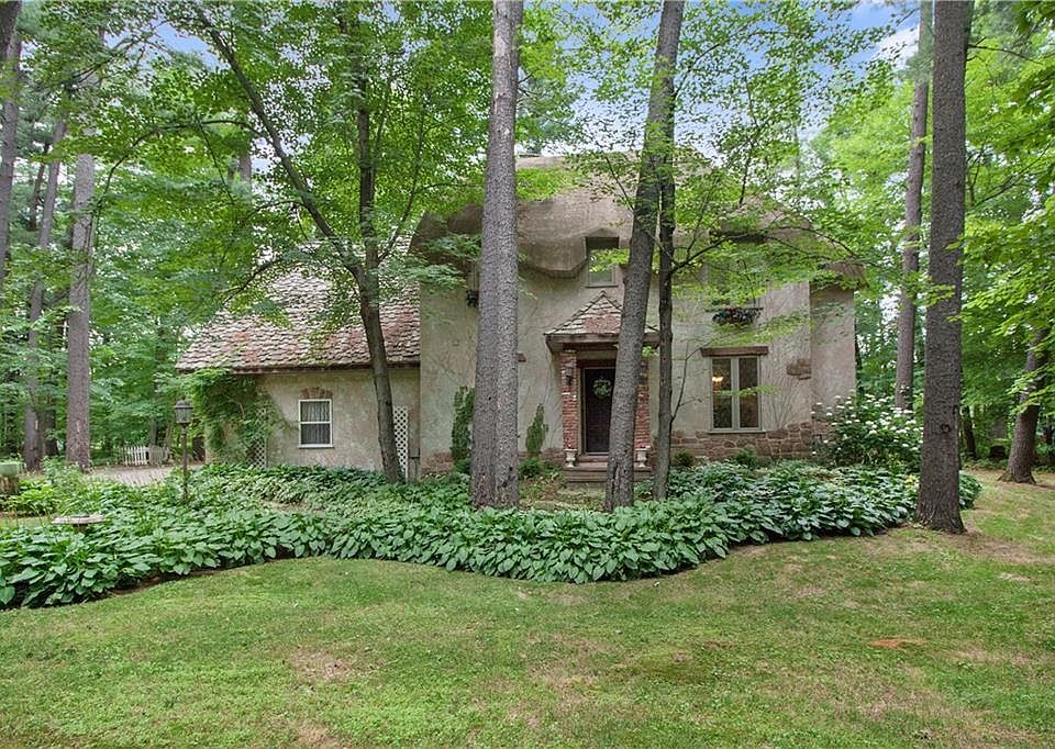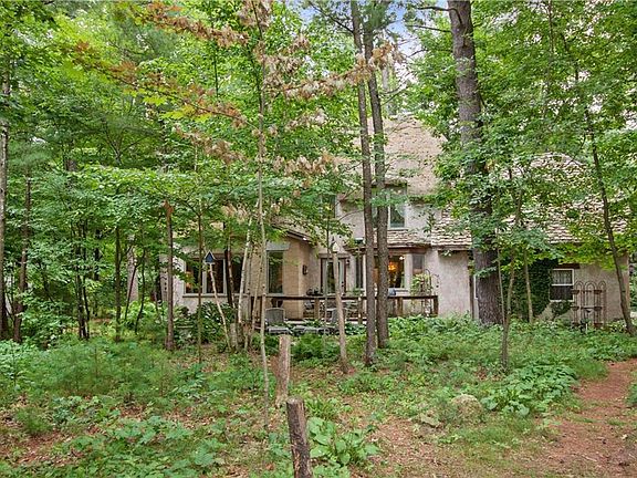 Charming English Style Cottage with 200 feet of frontage on Tainter Lake! Nestled on private wooded lot! Enjoy boat traffic & water fowl from deck off back of home. Great fire pit area. Artistically customized throughout with faux painted walls, wood beams, leaded glass windows, distressed wood plank floors & custom trim & doors. Kitchen features antique style cabinets & lg center island. Enjoy cozy winter days in front of gas fireplace. Close to public boat landing. Easy access to interstate.