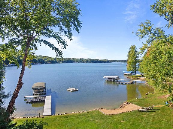 Spectacular log lodge on 3.46 Acres wooded privacy with 102' sandy Whitewater Lake frntg. Offered Turn Key Furnished for immediate fun! You'll be wowed by the lofted great rm w FTC windows, hdwd flrs, and stone FP framing majestic lakeviews. Spacious yet intimate, this 5738SF masterpiece accommodates the entire gang. Featuring main floor primary suite w FP, jetted tub + separate shower, 4 Guest BR's, Bunkroom w 6BD's, Loft, 3.5BA's, finished Lower Level, and 3.5 car heated garage. Chef's kitchen w SS appl's, granite tops, RO system, lakeview dining, screen porch, and expansive sun deck are ideal for entertaining. W/O LL boasts radiant flrs, fam rm w/3rd stone FP, theatre and karaoke, 2 BR's, Full BA, shop/mech rm, and backup generator. Pontoon, Jet Ski, Lifts Avail. Add'ly.