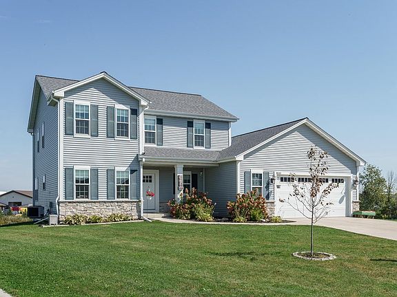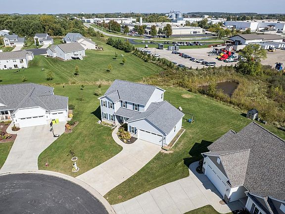 Quality-constructed home on nearly half an acre at the end of a peaceful cul-de-sac! This Focus on Energy certified home is filled with high-end finishes including quartz countertops, premium flooring, soft-close cabinetry, soaring ceilings & Smart Home features. The main level offers a gorgeous kitchen with large island & pantry, open to the beautiful living room with modern fireplace & dining area with deck access. A den/bonus room, mudroom & half bath complete the main floor. Upstairs you'll find a stunning primary suite, two additional bedrooms & two full bathrooms with double sinks, plus a convenient laundry room. The lower level is ready for future expansion with egress windows. Outside, enjoy a composite deck, patio, firepit & hot tub with tranquil views & no neighbors behind you!