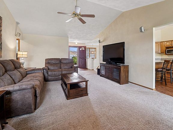 Desirable split-bedroom ranch! As you enter the home, the living room greets you with a cathedral ceiling and a cozy gas fireplace. The open-concept design flows into the kitchen, featuring granite countertops, breakfast bar, and a full appliance package. Adjacent to the kitchen is the dining area with access to your four-season room and concrete patio overlooking the pond — perfect for relaxing or entertaining. The primary bedroom offers a walk-in closet and a private bath with a tile walk-in shower. Two additional bedrooms share the main bathroom. A spacious 3.5 attached garage with generator plug and includes stairs leading down to the basement. Steps away from High Cliff State Park and Lake Winnebago!