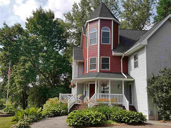 New Description: Prime hunting land with an offset on the taxes due to agricultural rental annually. This 12.87 acre property boasts a newer Victorian 2 story with finished lower level and a 4+ car garage. The kitchen is gorgeous and newly remodeled. There is a breakfast bar, walk-in pantry, large open area, built in desk with hidden oven and microwave for added beauty. The sink is cast iron and is lovely. The kitchen is open to the large dining room which is open to the living area with a fabulous fireplace as the center piece. A pellet stove has been inserted into the fireplace which heats the entire home in the winter. The 3 season porch, which can be used all year if you use a small space heater in the winter, is pine walls and ceiling with permanent decking screened in to keep the bugs out. There are floor to ceiling windows to overlook the woods and wildlife as well as the babbling brook that runs through the back yard of the property. There is a permanent grilling deck attached to the 3 season porch which is directly off the dining/kitchen area. All of the floor in this home is hard surface except some finished area in the Lower Level. The bathrooms have all been updated recently and are amazing. The large master bedroom in the upper level features a sitting area, large closet, and master bath with walk-in shower. Two more good sized bedrooms with ample closet space are also in the upper level, and a full bath with tub/shower and dual vanities is between the two bedrooms. The attic level is open and airy with the custom windows in the turret providing exceptional natural light to the entire level. This area could be used as an exercise room, a studio, or music room. Adjacent to this room is the fourth bedroom that is large and has a built in desk. In the lower level of the home there is a family room for kicking back and relaxing with a movie, read, or play games. The fifth bedroom is in the lower level along with a full bath. Laundry is also in the lower level. The amazing four plus car garage has separate electrical service, plenty of lighting, and a full upper level storage area. A great building for a shop and/or to store all of the toys. Across the foot bridge over the creek is the acreage. A wonderful piece of land for hunting, ATV riding, or hiking. Some of the land is tillable and can be leased to local farmers to offset some of the taxes. This property is in a great location; far enough away for seclusion, yet close enough to all the amenities.