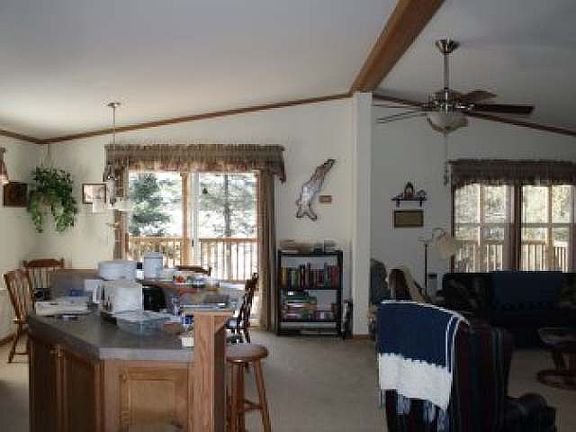 Lake Home with a View! Only 2.5 miles west of Phillips on E. Wilson Flowage Road. Gather all your friends and family for the magnificent sunsets from a large 28x10 covered porch. This home has plenty of space with a total of 1,400 square feet, 3 bedrooms and 2 baths. The home was built in 2005 with an open floor concept and cathedral ceilings. This 1.1+/- well landscaped acre lot feels private with many mature spruce trees. The water frontage is swimmable, with an aluminum roll in dock and a 15x10.5 boat house at the water's edge. Setting with a western exposure on Wilson Lake one of four lakes on the Phillips Chain of Lakes. Start your family memories today and watch your children grow with all types of water sports on this fantastic Northwoods Lake. Call for an appointment to see this jewel!