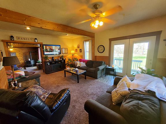 Opportunities like this don't come along often! Nestled on over 8 acres of rolling countryside this country estate offers over 2,000 sq ft, 4 bedrooms,2 full baths,eat-in kit,huge liv rm w/French doors,huge knotty pine family rm with woodstove, mainfloor laundry,full basement and a variety of outbuildings including a 40x120 metal pole shed w/concrete floor,80x28 barn w/milkhouse, plus a 2 story 20x48 garage+more.Enjoy the peace and serenity of country living by being oone of only two homes on this quiet, dead end road.This property is in need of some updates but offers circuit breakers,updated boiler, water heater,well pump and mound system less than 8 years old. Outbuildings are in various stages of disrepair thus there is no entry allowed to wood frame buildings. 1yr home warranty incl.