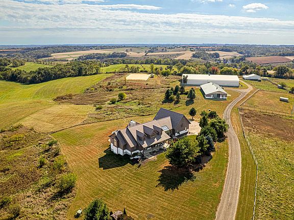 Escape to this one-of-a-kind luxury estate on 67.27 acres (per survey), offering unmatched beauty and privacy in Green County! This sprawling ranch offers nearly 5,500 sq ft of living space, featuring an open-concept main floor with soaring ceilings in the living room, a chef’s kitchen with Sub-Zero fridge, quartz countertops, and a large island. The luxurious primary suite offers a private walkout to the sunroom and a spa-like bathroom with a soaking tub. A second spacious ensuite completes the main level. The walkout lower level boasts a family room with kitchenette, two additional bedrooms, and a full bath. Outside, enjoy a fully loaded 40'x117' barn, 40'x62' hay barn/shop, and an 82'x176' indoor riding arena with paddocks and magical wooded trails. See all this property offers!