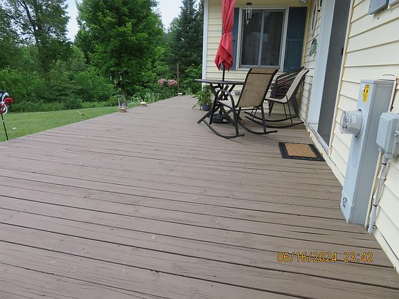Want a 3 bedroom 3 full bath 1 story walkout basement in the country?? Want to be able to hunt out your back door on 39.18 acres?? THIS IS IT!!. Maintenance free exterior, large attached garage w/2 8x7 OH doors with EDOs. PLUS a 30x30 detached garage. Main floor laundry, open concept kitchen/ding/living room with cathedral ceiling cozy woodstove for winter days. All rooms of good size master w/bath/ jetted tub, walkin closet. 2 nice rec/family rooms in lower with walkout door. Improvements in last 3 years include: roof and gutters, woodstove, fresh paint, carpet and flooring,furnace and AC,water softener, duct cleaning, stools, smart thermostat, garage door EDO. Work from Home?? High speed fiber optic to home. Property is a rare find. Call today! LOWER level floor painted concrete
