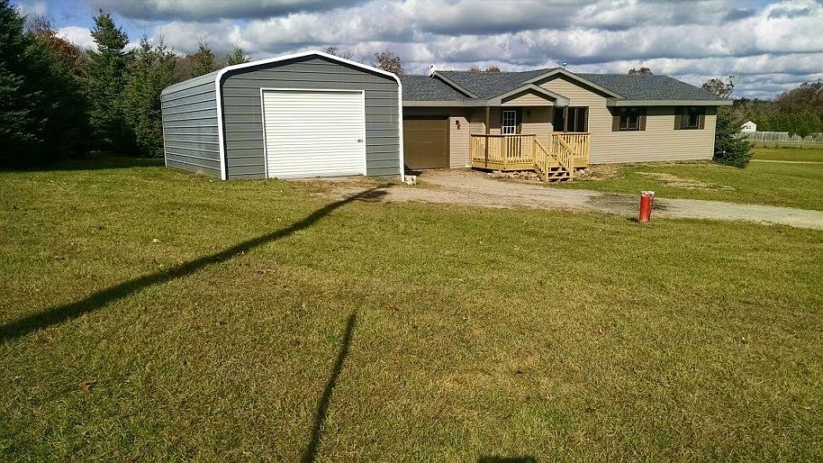 ** PRICE REDUCED!! ** Updated 3 bedroom ranch on a 1.25 acre quiet country setting. Features kitchen w/ loads of cabinet space, new counter tops, snack bar, tile backsplash and eat-in dining area with patio access to new concrete patio. Functional layout w/ all new floorings throughout and tons of storage space. Basement has finished space and is stubbed for a full bath. 1 car attached garage & 1 1/2 car detached garage.
