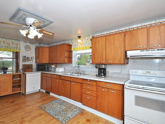 Lake Mills School District with country living. This 10 acres parcel is ideal for hunting, 4-wheeling or hiking. Experience a warm feeling as you enter this home. Country setting with rustic decorating with barn boards and beams. Main floor master bedroom and bathroom. Three season porch is a gathering place for the family. There is auxiliary heat for cool evenings. Large eat in kitchen leading to large deck (23x14) overlooking 10 acres. It consist of pasture, woods and tillable land. This property includes a garage/workshop 27x35. Easy access to Mad. and Milw. 1 yr HMS Warranty