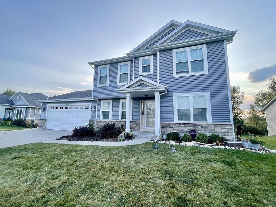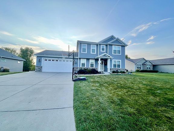 Beautiful open-concept main level with attractive new flooring, spacious kitchen & dining with deck access, and a bright living room with gas fireplace. Enjoy both a den & bonus room/office, plus laundry & half bath on main level. Upstairs, you'll find four bedrooms, multiple walk-in closets & two full bathrooms, including a spacious primary suite retreat. The walk-out lower level expands your living space with a carpeted rec room & generous storage. Step outside to enjoy peaceful views backing up to a preserve with sunsets, wildlife & a 2-mile walking path. Outdoor amenities include two sheds, a pool & a trampoline. New roof. Picture yourself unwinding on the deck or patio, soaking in the sunlight & natural setting. Easy highway access to shopping, dining, lakes & fun! Must see!