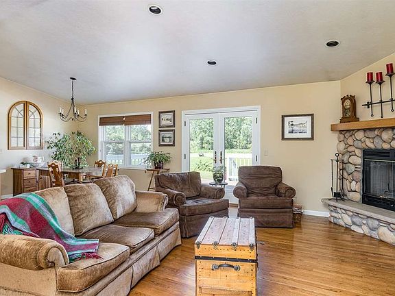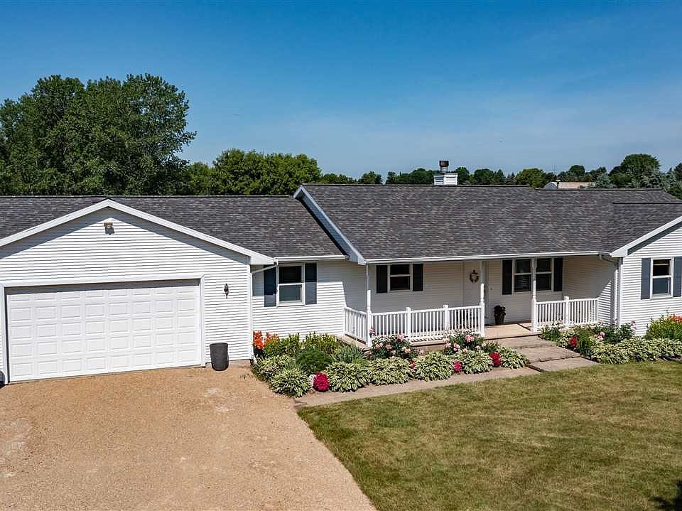 Lovely countryside setting. Enjoy the hazy days of summer in this secluded environment. It's a private paradise! Tucked beside towering spruce trees and borders of gorgeous perennials. Large organic garden bed, 2 asparagus patches. Open areas are the perfect spot for horses and hobbyists. Appreciate a semi open concept between the kitchen and living areas. Beautiful hardwood floors grace the main level. Wood burning fireplace warms the great room. Expanded entertaining space in the lower level with a spacious rec room and full bath. Impeccable condition. Peace of mind updates include roof, furnace, a/c, dishwasher, washer and dryer and flooring. 15 miles from Appleton, 20 to Oshkosh, minutes from Dale and New London.