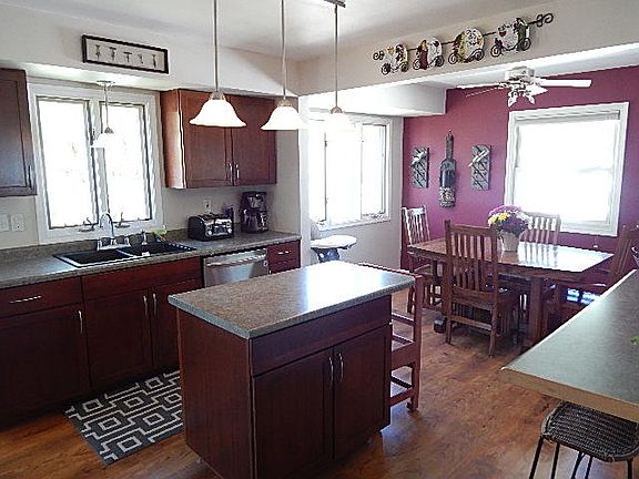 Nicely maintained ranch with numerous recent updates one block from park, boasts a spacious fenced backyard and lovely landscape! Interior features finished lower level with bedroom, den, office and rec room with bar, GFP and new carpet/flooring. Great chefs kitchen offers island plus breakfast bar, stainless appliances, new Pergo flooring flows into dining room. Living room with attractive NFP and large bay window with window seat. Conveniently located near shopping, schools, movie theater!