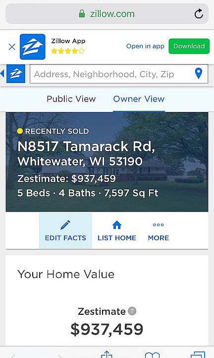 This 7600 square foot single family home has 6 bedrooms and 5.0 bathrooms. This home is located at N8517 Tamarack Rd, Whitewater, WI 53190.