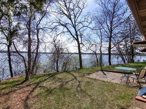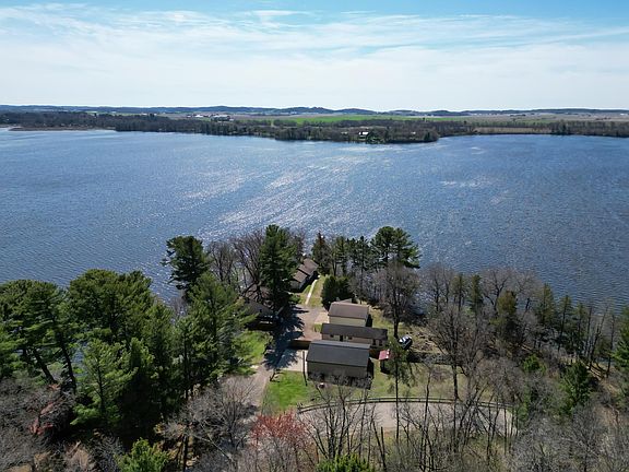 Special Upper Tainter Lake Peninsula property (known as Grandview Point to the locals) offering a 2 bedroom / 1 bath year-round home or incredible cabin w/oversized 24' x 30' detached garage, 8' x 18' boathouse and an estimated 332'+/- of water frontage and .41 acres. Walking distance to popular bar & grill for an added fun factor. Near to public boat landing! Two sets of stairs currently down to the water. Panoramic stunning views! Cozy gas fireplace in the living room! Kitchen appliances, washer, dryer, & water softener are included in the sale. Well/Septic/RO system/Iron filter new in 2023. Wtr Heater 2024. Steel siding, circuit breakers, and roof 2008. Start building lasting family memories for years to come! Tainter Lake is a great recreational lake to boat, fish, swim, canoe, kayak, enjoy sunset cruises & go to dinner by boat. This property is clean and well maintained.