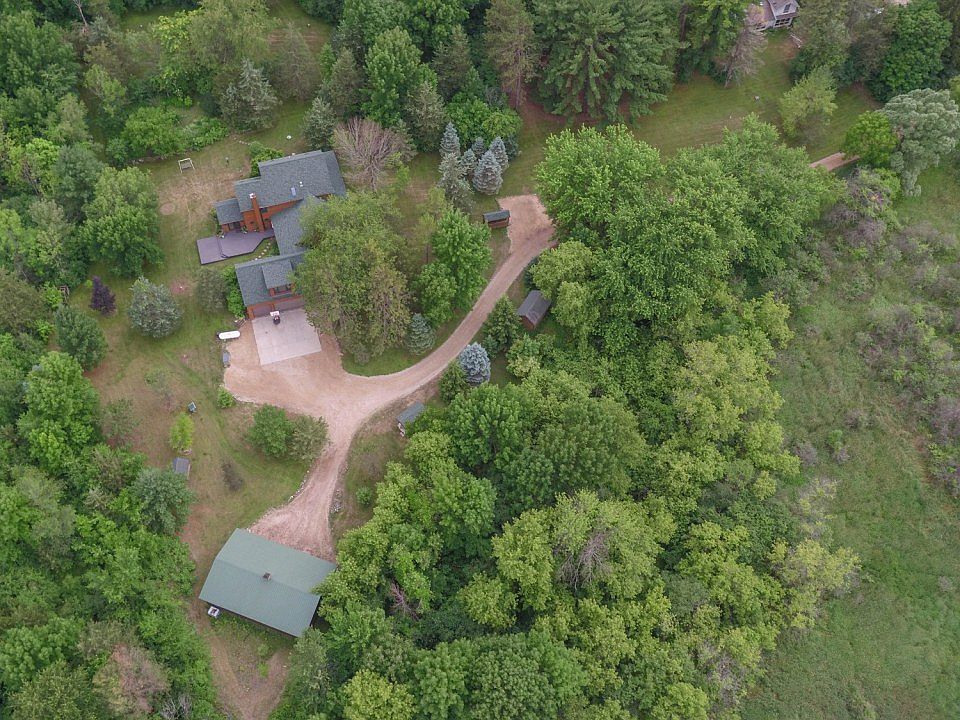 This cedar home is discretely tucked into 18 acres of Pine, Oak, Maple, Hickory and Cherry. Tall, vaulted ceilings and walls of windows flood interior with natural light. Thoughtfully planned, the views are natural works of art that adorn every room. Builders own offers craftsman construction, 5 bedroom, 3.5 baths. Expansive deck off gourmet kitchen welcomes outdoor meals and entertaining. Attached garage offers heated 24x36 artist studio. Auxiliary building 30x45 offers 110amp. Wildlife viewing opportunities abound, trophy white tail, wood ducks, cedar wax wings fall feeding frenzy is a delight to watch. Highlights include inlay wood flooring, black walnut ceilings in master, thin coat plaster walls, solid surface counters, elk chandelier in living room, in-floor heated basement floors.