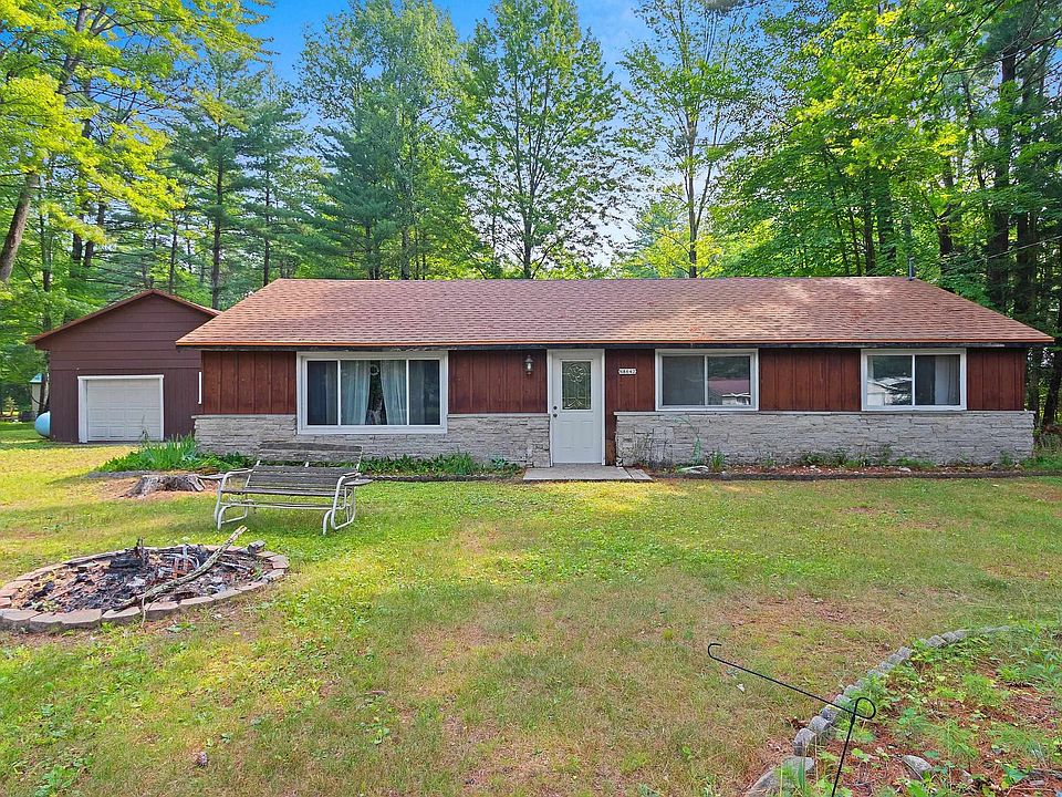 Located just steps from the boat landing, this turn-key home is ready for you to enjoy as a weekend getaway or full-time retreat—everything inside stays! The oversized garage is a dream for hobbyists and outdoor enthusiasts, featuring a one-stall front entry plus a 3-stall tandem space (22x31) for storing boats, ATVs, and more. Inside, you’ll find a spacious foyer/laundry room with a tub sink, a kitchen with plenty of storage, and a bright living room filled with natural light. Three bedrooms and a full bath complete the layout, while the fenced-in yard adds privacy and space to relax.