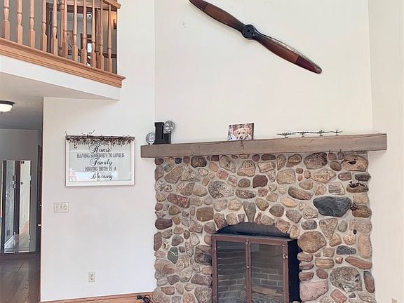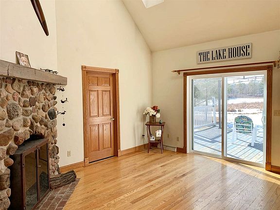 Private Paradise on 15.5 Acres w/ 600 ft of Frontage on Lutz Lake (Per Seller). Spacious Kitchen w/ Patio Doors leading to Deck w/ View of Lake & Picture Like Wooded Scenery. 3 Bedroom, 2.5 Baths w/ potential additional space above garage & lower level for Future Expansion. Master Bedroom w/ Fireplace & Bath. 2 More Fireplaces to keep you Cozy! 1 of a Kind Property for Year Round Living or Vacation Home! Detached 30x35 Shop. Cottage on property is being Sold as Is, currently used for storage. Updates: 2017 Furnace, 2018 Fridge-Range, Mud Rm, 2019 Water Softner, Patio Door. Must See!