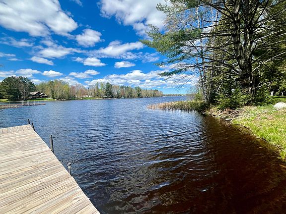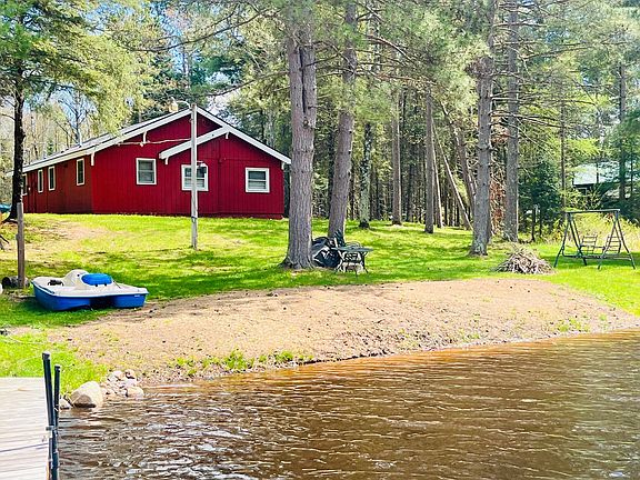 Lakefront retreat!Discover this delightful 4-season home/cabin nestled on 1.3 acres with 125 feet of serene water frontage located in a quiet bay on Lac Sault Dore/Soo Lake. This 601-acre lake is known for its fishing, scenic islands and peninsulas. This inviting property offers 3 spacious bedrooms, 2 updated bathrooms, a convenient main floor laundry. Enjoy the expansive family room perfect for gatherings and relaxation. There is an additional rustic cabin that could make a great bunk house. The home features two garages, one 24x24 with electricity. The other garage is 18x21 and brand new. This property has many improvements including a new roof on the main garage, added shower and updated bathroom/laundry area, new carpeting just to name a few. Most furnishings will stay with the home.Enjoy direct ATV and snowmobile trail access and be near 1,000s of acres of public hunting land. This waterfront gem will not last long! Call for a personal showing today!