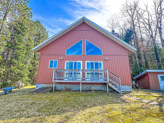 Built in 2016, this beautiful 2 bedroom, 1 bath cabin with a loft offers 75’ of level frontage on 601-acre Soo Lake, a full-rec lake known for great fishing and endless fun! The half-acre wooded lot and quiet road provide an ideal setting for privacy and a relaxing Northwoods retreat. Inside, the open concept design features knotty pine vaulted ceilings, a cozy wood fireplace, beautiful kitchen cabinets, floor-to-ceiling lakeside windows & views, and double patio doors leading to the lakeside deck. Solid wood doors, recessed lighting, and quality finishes throughout. A 3-car detached garage and carport provide ample storage. Conveniently located in a recreation-rich area--perfect for boating, ATVing, snowmobiling, and more--you're minutes from the boat landing, Corner Connection bar, and 1000s of acres of public Price County Forest Land. Summer is right around the corner and this is the perfect getaway to set yourself up for vacations at the lake!!
